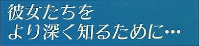「DATA BANK」から得られたデータを、さらに分析。その女のコの行動から見た性格をズバリ調査する。また「女性プレイヤーから見た印象」も同時収録。これは本物の女性が執筆したもの。ヤラセじゃないよ!