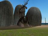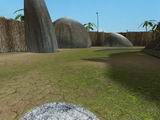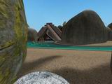 ボーンヤード(骨の墓場)から岩の間を通り抜けて進むと、檻のような三角錐形の留置所に着きます。そして留置所までの通路の一部が壊れているのでそこから裏側に出れます。