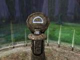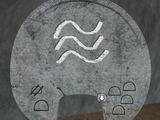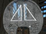 風車を動かすにはまたバーロの力が必要なのかも知れません。先ほどボーンヤードでシンボルを1つ見つけました。このシンボルを使ってみましょう。風車の操作パネルから一度降りてスレートに書き込みバーロを呼ぶために二歩ほど、その場を離れます。するとバーロがやって来て、いきなり暴風が吹いてきます。どうやらこのシンボルは強風をバーロに発生させるためのシンボルだったようです。早速操作パネルまで戻り左のレバーを引いてから中央のレバーを引き、右のレバーを引きます。そして左のボタンを押しました。そして留置所まで戻ってみるとセカンドペデスタルが出現していてペデスタルシンボルが見えます。セカンドペデスタルのシンボルをメモします。