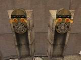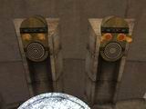 4つのパネルに先ほどスケールで見たものと同じように入力します。するとペデスタルが降りてくるので、サードペデスタルのシンボルをメモします。ですがここでの目的はこのペデスタルのある円柱ごと上の橋の所まで上がることです。ペデスタルフロアから降りるとフロアが上がっていきます。重さに関係しているようです。