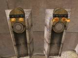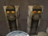 先ほどペデスタルを下げた時とは違うマーク(上記画像参照)を入力後、一番上までフロアが上がったら、ファーストペデスタルまでセカンドペデスタルを使って戻り、そこで先ほどのサードペデスタルのシンボルをスレートに書き込みバーロを待ちます。するとファーストペデスタルにサードペデスタルのシンボルが記録されます。それをクリックして移動しましょう。サードペデスタルに着くと、プレイヤーの体重の重みでフロアが下がって行きます。ですがアリーナのセカンドレベルにある橋の高さで止まります。