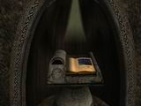 そこを通り抜けてから右に進もうとするとまたエッシャが現れて、ここはグレートシャフト(大立坑)でわれわれD'ni人が造ったものだ.......そこにあるエレベーターで降りたところにある小部屋に次への接続書があるので、それを使って旅を続けろと言い、消えてしまいます。