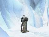 落ちた場所から少し進むと梯子があり、そこを登ろうと思ってもスレートが邪魔で登ることが出来ません。仕方なくスレートをその場に放置して梯子を登って上に上がると、そこには二つ目のペデスタルがありました。その横には何かの「シンボル」が雪の壁面に描かれています。二つ目のペデスタルのシンボルマークは最初のシンボルとは違うもので、その下には最初のペデスタルにあったシンボルマークがあります。セカンドペデスタルシンボルをメモして、その最初のペデスタルにあったシンボルマークをクリックしてみると、やはりファーストペデスタルに戻り、そこには先ほど放置したスレートがありました。