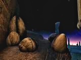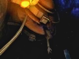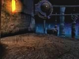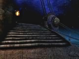 コントロール・ルームの前面に出てパネルのところに行くと全部で4つのパネルがあります。右に2つ。左に2つ。どれをどのように操作するのか判らないまま、コントロール・ルームをいったん出て左の階段を進んで行くと、通路に大きな石とロープのようなものが障害となっていて先に進むことが出来ません。上を見てみると大きな滑車があってそこからのケーブルが切れてしまっています。通路の障害物は滑車のケーブルのようです。この障害物を除けないとこれ以上は先に進めません。