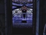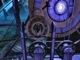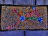 少し進むとドアがある建物にたどり着きます。そのドアの中央にはボタンのようなものがあってそれをクリックすると、ドアが開きます。中に入り部屋の奥に廻るとケーブルカーマップが壁面に設置されています。