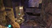 エレベーターで下に降りると、左右に道が伸びています。バランス橋の制御パネルは右に進んだところにあるので、分岐点まで戻ります。分岐点に着いたら、再び右に曲がり玄武岩の洞窟を抜けます。