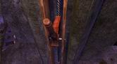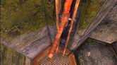 このエレベーターの行き先は洞窟の頂上です。到着した地点から後ろに振り返り進むと、バランス橋の全貌を眺めることが出来る見張らし台に出ます。見張らし台からは、巨大なバランス橋のメカニズムを間近で見る事が出来ます。一方の端には、ハンモックに似たものがぶら下がっています。これが{キャッチバスケット}です。