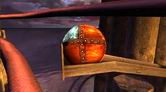 バランス橋には、金属製の半円形のパイプがあって、そこにトラックが繋がっています。また、橋は支点の役割をする巨大なギア2つで構成されていて、ギアを左右に移動させることによって、支点の位置が変わる仕組みとなっているのです。左に伸びているトラックを追っていくと、球があるのが見えます。カーソルを合わせてズームアップさせると、この球の片側半分の構造が判ります。4つに分割されているうちの3つが木製で残る1つが水晶になっています。