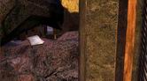 - 小屋に近づき、障子のドアを開けておもりの部屋に入る
