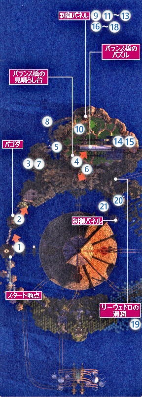 - 小屋を出て、バランス橋の制御パネルまで戻る