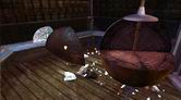 - 木製のトラックの上を進み、共鳴リングの制御パネルを見つける