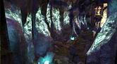 エレベーターの先にある通路は、両側が青く光っています。ここはサーヴェドロの洞窟です。出口付近まで進んだら、右側の壁にあるハシゴを見つけましょう。足掛け部分が直接岩盤に取り付けられているので注意していないと見逃しやすいのです。ハシゴが見つかったら、上へ登ります。