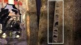 - トンネルをさらに進み、右側の玄武岩に刻み込まれた梯子を登る
