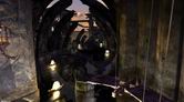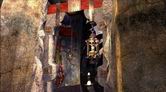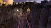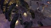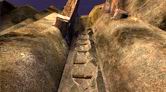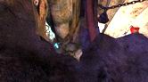 壁画を見終わったら、崩れた玄武岩の柱の通路を進みます。ここはサーヴェドロの洞窟と呼ばれています。行き止まりのように見えますが、右上方の岩から共鳴リングのトラックに移動する事が出来ます。