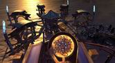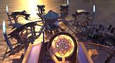 制御パネル上ではボタンを押しても特に変化は見られません。ここでチェックすべきところは、ボタンと青い水晶の関連です。制御パネル上のレバーを引くと、氷の球が発射されると同時に、制御パネル上のギアの間をボールベアリングが移動し始めます。このボールベアリングによってボタンが時計廻りに順次押されていきますが、ボタンが押されている間は水晶が消えていることに気づいたでしょうか。チェックが完了したら、プラットフォームを下げてからハシゴまで戻りましょう。