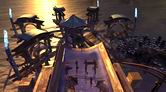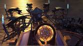 バランス橋の制御パネルと同じように、ここでも左側にあるレバーを引いてプラットフォームを上昇させないと、制御が出来ないような仕組みになっています。プラットフォームが上昇すると、共鳴リングが一望出来るようになります。5つの小屋に設置されている全てのリングが、トラックで繋がっているのが判ります。ここでも氷の球をうまくすべての小屋を通過させて中央タワーに戻せばクリアになります。