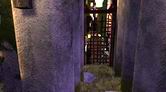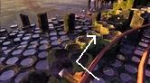 トラックから下りると、すぐに回転式トラックのパズルが左前方に見えます。岩が階段状に広がっていますが、この上に進むことは出来ません。岩を左手に見ながら、進んでいくと左側に小さな空間があります。そこに回転式トラックのパズルへの入り口になる格子状のドアがあります。