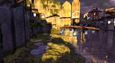 曲がりくねった道を進んでいくと、光る浮遊岩がある所へ出ます。水面に光が反射して、幻想的な空間です。足場は木製の橋に変わりますが、そのまま先へと進むとハシゴが見つかります。このハシゴを登ると、アマテリアに最初に到着した塔に到着します。つまりアマテリアのパズルをクリアしながら1周してきたことになります。