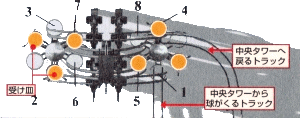 さもないと球は他方のホイールに移ることが出来ず、途中で砕けてしまったり、バネがないリングに着いたときはそのまま下に落ちてしまったりする。