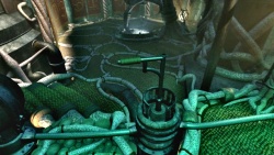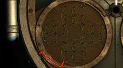 各単語に対応するシンボルを入力すれば、3つのコードのうちの1つが完成したことになります。またこれらの3つのコードは、任意の順で、どこに入力してもいいのです。 3つのシンボルを完成させると、内側のシールドが解除されて、溶けて消えてしまいます。一度解除コードが入力されたシールドは、通電されている間はシールドを溶かし続けます。電気がこなくなると、再びシールドは再生されます。内側シールドが消滅すると、滑走船のプラットフォームに移動出来ます。このプラットフォームには地階への階段も用意されています。