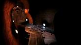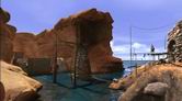 少し周囲を調べてみましょう。入り江には小さな鉄塔があって、塔の向こうには発電所の水門と電力ケーブルが見えます。石の建物からキャットウォークの終端の金属ポールには、太い電力ケーブルが張られています。ケーブルはさらにキャットウォークの下を通って、海中に延びています。また、鉄塔から峡谷の発電所に向かってケーブルが延びています。入り江のガントリーと鉄塔は、この島の各所に電力を供給する発電システムの一部を構成しています。