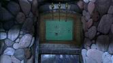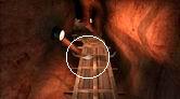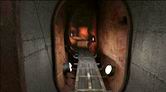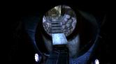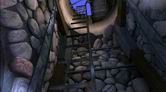 次の分岐点まで進んでいくと、前方にドアが見えます。このドアを開けようとしても、サーヴェドロの仕業なのか、内部から細工がしてあって開けることが出来ません。ドアは放っておいて、ドアの手前で右側に切れ込んでいた道、青い照明に照らされた狭いトンネル(ドアから振り返った場合は左側になる)を進みましょう。青いトンネルを進んで行くと、ちょっとした空間が開けて、左にハシゴ、右に電気設備のパネルが設置された場所に出ます。