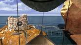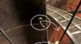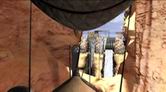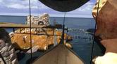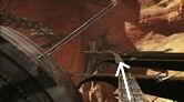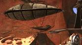 エレベーターを降りたら、ガントリーのプラットフォームの端に進み、乾ドックのドアのリリースレバーを引きましょう。これでドアが開いて飛行船が姿を現します。飛行船はケーブルに沿って浮遊していますが、プラットフォームの通路にぶつかって停止します。ガントリーの通路が飛行船の重さによって少し前に押し出され、エレベーターの通路からずれ、飛行船に乗り込むしかなくなります。早速飛行船のゴンドラに乗り込んで、前方にあるリリースハンドルをクリックしましょう。