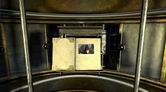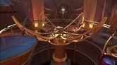 ジェナーニンに戻ると、展望台の2階に到着します。イメージングテーブルに近づいて、先ほど手に入れたシンボルのスケッチを載せましょう。イメージャーはスケッチを下方に投影して、テーブルの下のカムからシンボルの3次元イメージを浮かび上がらせます。もう1つのカムは下に落ちて、その伸縮自在な表面に3Dのシンボルを刻印します。続いてカムが回転して、ケージのメカニズムを操作します。イメージャーが正常に作動すると。天井にホログラムが浮かび上がります。ここもアマテリア、エダーナ、ヴォルタイクを訪れた順番によって、イベントが異なります。もし今回が3番目のシンボルでしたら、ホログラムが終了した後、中央にあるケージに向かって通路が伸びます。天井のホログラムにはアトラスが現れて、息子たちに宛てたメッセージを伝えます。