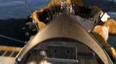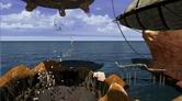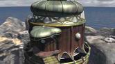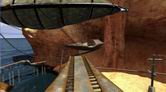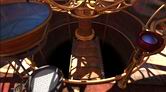 飛行船から降りて、ガントリーのプラットフォームに出ましょう。端にあるガントリーのレバーは飛行船を入り江の鉄塔に向かうレールに繋げるためのものです。レバーを引いて、飛行船がブレーキから開放されて前に動くと、ガントリーのプラットフォームは前に押し出されます。そしてその下のケーブルに繋ぎとめているメカニズムが持ち上がって、ポールが第二の鉄塔上の正しい位置に動かされます。