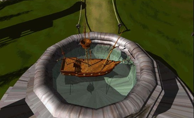 港に行くと沈没船が浮上していますから、船尾のドアを開けて下さい。ストーンシップ時代に移動する本があるので本をクリックして開けてから、中のムービーをクリックして下さい。