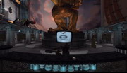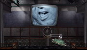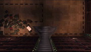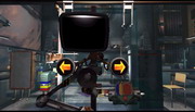 「BRIDGE REPAIR」のビデボットと話すと、「Standerd Damege」という「修理の命令書」を手に入れろと言われます。しかし、他のどのブースを見てもそんなものはありません。このエリアに他の部屋があるのでしょうか?スタート地点でエレベーターを降りた所の後ろに本が張り付いている壁が見えます。そっちへと続く通路を見つけて進んで見てください。途中で左を向き、本を取り出すと右に落ちていきます。そう、重力が右に働いているのです。通路を降りきると、今迄は壁だったところに立つことになります。