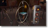 遊園地や銀行で良く見る杭と縄で通路が出来てる暗い部屋に行きましょう。何か暗い雰囲気の場所に出るので、前進してテレビのある場所に出ます。「今は時計が故障しているので、時計が元に戻るまでは何も出来ない」ようです。右か左を向いて進むと、この場所の裏側に回り込めますタイムパズルは太陽と月と地球を調節して、衝突させないパズルです。とりあえず、最初は太陽を無視して、地球と月をぶつからないようにします。そして「新月」を利用して太陽とぶつからないようにします。