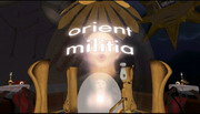 回転する灯りのところに行き、何回も回転させます。すると「Orient Milicia」という言葉が浮かび上がり、書類をもらえます。