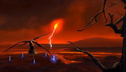 木の枝がボールを叩きながら動いています。右上の太陽を押すと雷が落ちるので、木の枝がボールを叩くのと、雷が落ちる順番とタイミングがシンクロするようにします。パズルがクリアすると木は燃えてしまいます。