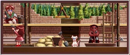 かなり重そうな斧を使うので最初は辛そうだ。アルバイトが済むと肩で大きな息をしているので《ストレス》のたまりは大きい(4/日) それでも、しっかり働くところを見せると「あんたも女だてらによく続くなあ」と見直され、さらに続けると