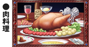 <肉料理>では《体力》が上がるが、それ以外は食事したからといって能力が上がることはない。上がるのは、困ることに 娘の体重。どれを食べても娘は着実に太る。太ったからといって体力がついたことにはならないのだ。つくのはゼイ肉。 だからドレスが着られなくなり困る事態が起こる事にもなる。