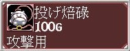 <投げ焙煎>もまた戦闘中に使う。モンスターに投げつけるとダメージを負わせることが出来る。逃げやすいモンスターに使うと良い。