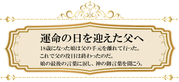 とくに、総合評価と、父に与えられる「神の御言葉」、そして娘からの「最後の言葉」は、育て方によってはガラリと変わって