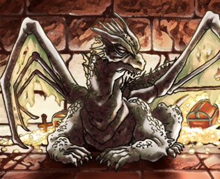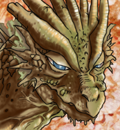 緑がかった茶色のドラゴンで、きわめて老齢だが、本当の年齢は不明。ものすごい女好きで、