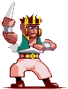 南部の蛮族出身だが、本人は普通の人物。剣士として売り出すために、かつてのコスチュームに身を 包み、その当時の化粧をして、いかにもコワーイ姿で敵に立ち向かう。武器は小ぶりの短刀である。魔法は全然ダメである。