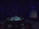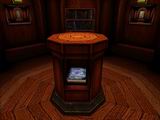 スペースシップの通路の手前で左側に下ります。すると通路の壁面にアーチ型の入り口が現れています。中に入って通路を道なりに進みます。突き当りまで行くと、潜水艦の潜望鏡のような形の装置が中央にあります。4桁の数字を入力出来るようです。ライブラリの「ライムの書」の最後に記載されていた数字を入力すると装置が上昇します。ライブラリに戻ってみると、ライブラリの中央に台座が出現していて、その台座にはライム時代の接続書があります。