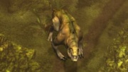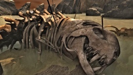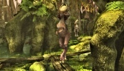 ジャングルに落ちたショックで暫く気を失っていたようです。気がついてみると、猿のような動物がこちらの様子を伺っているようです...マングリーです。突然、遠くから別のマングリーの3トーンの泣き声が聞こえてきました。長く高いピッチと短くて低いトーン。そしてもう1つ長く高いピッチです。この声がどうやら「警告音」になっているようです。いきなり天敵らしき動物(カモダイル)が現れて私を飛び越えて一足早く逃げ去ったマングリー達を追って行ってしまいます。落ちた場所を見渡すと「テンポラリーパラセイル」のテントなどが木に引っかかっています。そして足元を見ると動物の足跡があります。先ほど、マングリーを追いかけていったカモダイルの足跡です。