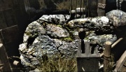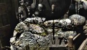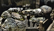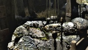 ここでの目的は収穫機の下の池の水中に見えた隠しドアに到達することです。この地域への水流は灌漑用水装置A・Bによって止まっていますので、後は収穫機を利用して池の水をくみ出してドアを水上に出すことです。左のレバーは収穫機をリフトアップ・リフトダウンするためのレバーです。右のレバーは収穫機のドアの開閉です。どちらのレバーも手前に引くか奥に押すかの2通りです。