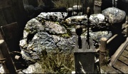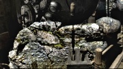- 下に降りてみると、左のほうにホイールレバーがあります。これをクリックするとガラスごしに池の中にある扉が下に降りて池の水がさらに少なくなります。