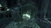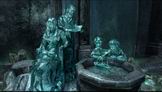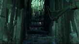 ベッドと反対方向には風のパイプがありますので、そこに潜り込みます。出た所にはスパイダーチェアとその反対方向にはアトラスとキャサリンのクリスタル像、そしてスパイダーチェアの右側にはリセットスイッチがあり、さらにその右側に目をやると、格子戸があります。その左側に格子戸のロックを解除するレバーがあるので、クリックして格子戸を開け、さらに奥に進んでいきます。