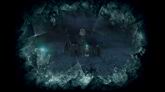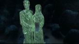 仕方が無いので右側に行きましょう。ちょっと降りると広場に出ます。広場に出てすぐ右側に通路が見えますので行って見ましょう。先ほど壊れたブルーボタンと同じものがありますがこちらは壊れてはいないようです。ここはエレベーターですが今は何もせずに広場に戻ります。少し進むと見覚えのあるクリスタルで出来た像があります。(トマーナの{アトラスとキャサリンの寝室}の暖炉のエレベーターのところに掛けられていた絵画) さらにその右には焚き火をした跡が残っているのでズームしてネックレスに触れて見ましょう。