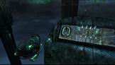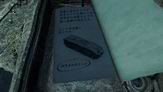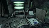 この接続部屋は何者かによって壊された痕跡がありますが部屋を出て、下に通じる階段を下り、暫くすると丁字路に出ます。左側を見ると何か装置みたいなものがあり、ブルーのスイッチらしきものは壊れているようです。
