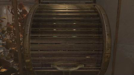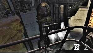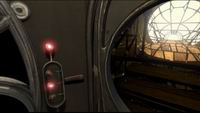 アトラスパズルの後、アトラスが現れた方向を見ると、どこかに通じる入り口の扉が見えます。実はこれはエレベーターなのです。その手前の右側にレバーがあるので引いてみると扉が開きます。