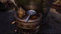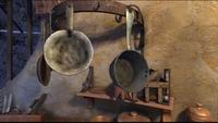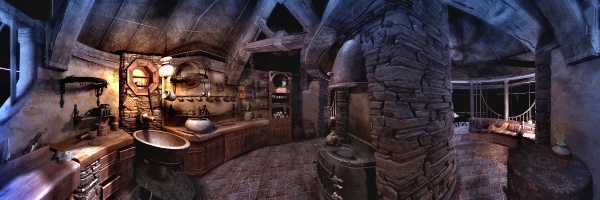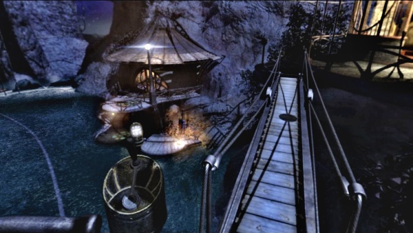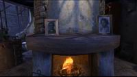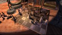 ここがリビングルームです。ここにはイーシャの教科書(D'ni語の辞書)やイーシャの自分の名前をD'ni語で練習したメモ、そしてイーシャの兄弟・両親のポートレート、アトラスとシーラスの対戦途中のチェスボード(シーラスがアトラスのしかけたトラップに気がつかなければ、あと2手でアトラスがチェックメイト)、暖炉などを探索してまわります。ここには「イーシャの寝室の{ブックシェルフパズル}」に必要な情報があります。