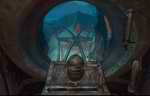 プロセス 17で見つけた装置の奥へ回ると梯子がかかっています。これを降りると前に降下させておいた潜水艦があって、クリックしていくと乗る事ができます。この潜水艦には3つのレバーがあります。右のレバーは前進、中央にある円筒形の筒についたレバーは転回、その下のレバーは、湖底に敷かれたレールの分岐でポイントを切りかえるためのものです。操作自体は簡単ですが、分岐ポイント以外にも停止箇所がありますので、現在位置を正確に把握しておきましょう。